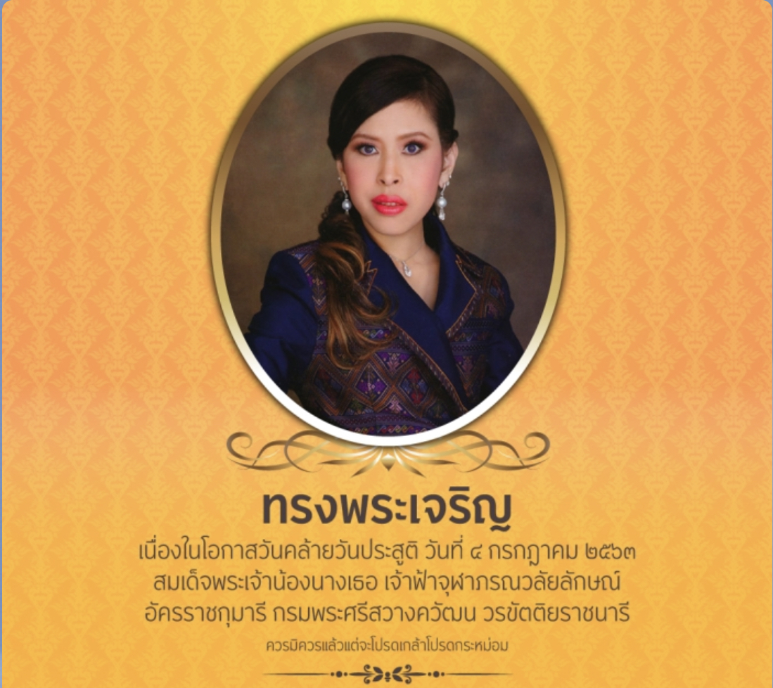 4 กรกฎาคม วันคล้ายวันประสูติ สมเด็จพระเจ้าน้องนางเธอ เจ้าฟ้าจุฬาภรณวลัยลักษณ์ อัครราชกุมารี กรมพระศรีสวางควัฒน วรขัตติยราชนารี
